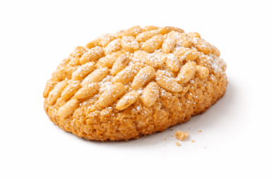 Almond-based cookie dough topped with pine nuts for a refined, delicate flavor.