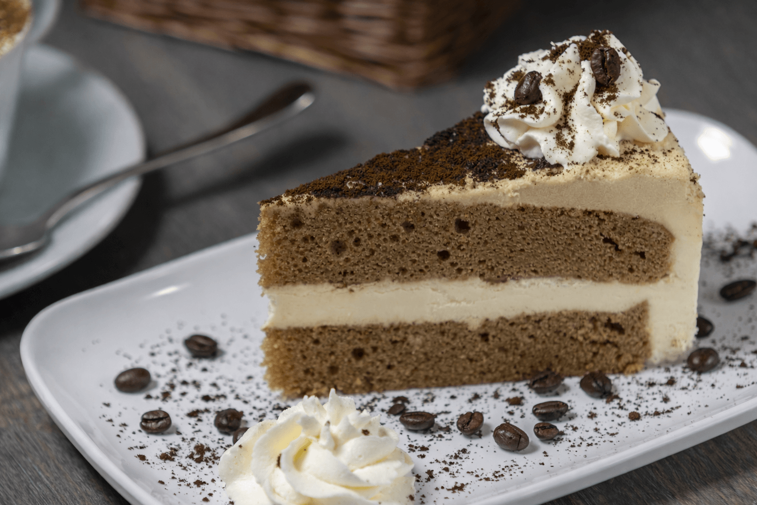 Coffee cake blends the comfort of vanilla sponge and smooth cream with the bold aroma of espresso. Balanced, creamy, and lively, ideal as an afternoon treat or a dessert that pairs naturally with coffee.