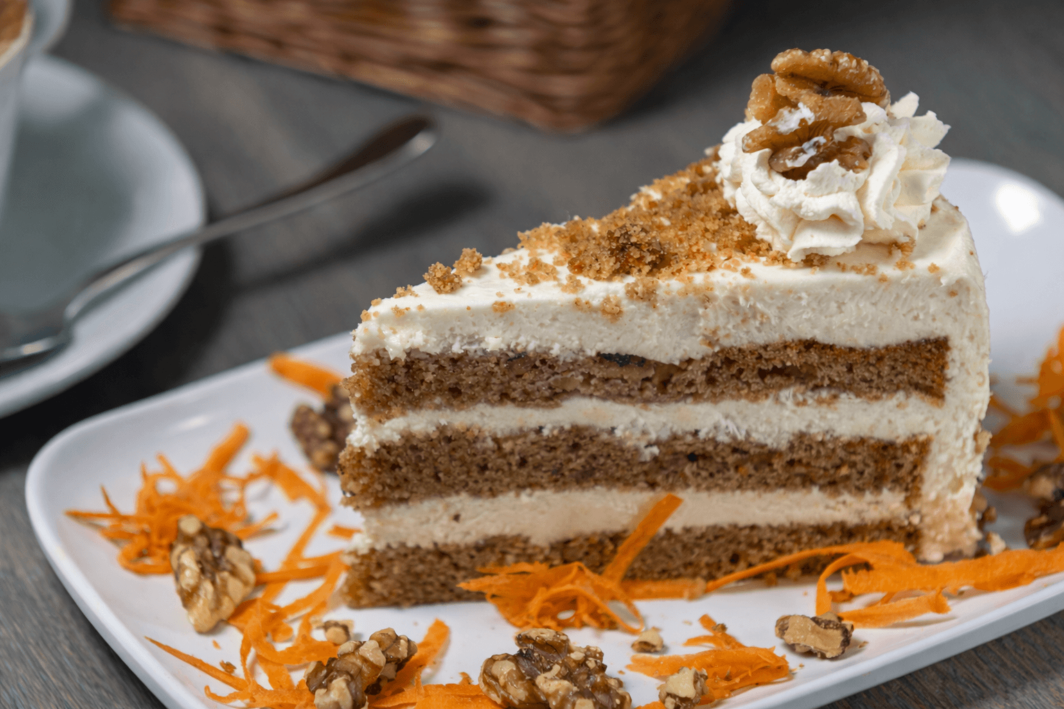 Its flavor moves between rustic charm and refined taste, with cream cheese frosting that balances the sweetness perfectly. The sponge is moist and comforting, while the cream-cheese frosting brings a gentle tang that keeps the sweetness in check. Each bite is soft, fragrant, and deeply satisfying.